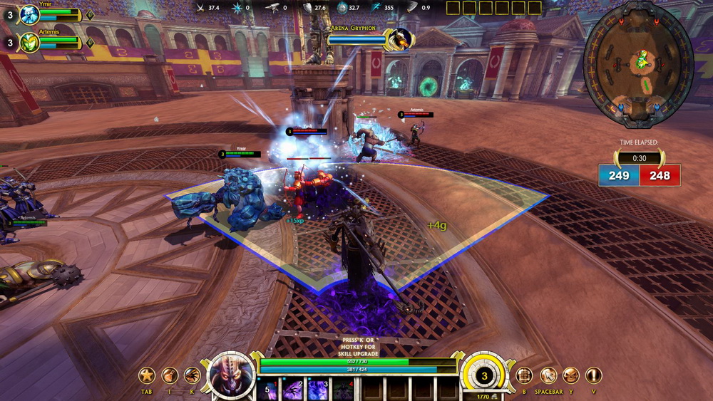 Το σίγουρο είναι πως η κάμερα τρίτου προσώπου συνεργάζεται άψογα με τους κλασσικούς MOBA μηχανισμούς και προσθέτει έναν επιπλέον βαθμό δυσκολίας στους αγώνες. Όπως και στο LoL, έτσι και εδώ υπάρχει ένα leveling σύστημα κατά τη διάρκεια των αγώνων, αλλά και διάφορα items που μπορούν να αγοραστούν εντός του match και προσθέτουν επιπλέον στρατηγική. Τα builds που μπορούμε να ακολουθήσουμε στηρίζονται κυρίως στο είδος επίθεσης των skill του θεού μας, δηλαδή αν είναι Physical ή Magical κατηγορίας. Υπάρχει μια καλή γκάμα «κλάσεων» για τη κάθε κατηγορία, όπως tanks, μάγοι, melee, ορισμένοι βοηθητικοί θεοί με heals, ranged χαρακτήρες και πολλοί υβριδικοί συνδυασμοί όλων αυτών. Θα λέγαμε ότι κάποιοι θεοί είναι πιο ευέλικτοι από άλλους, όπως ο Ra, που μπορεί να χρησιμοποιήσει από magical και tank build, μέχρι και καθαρά physical build.